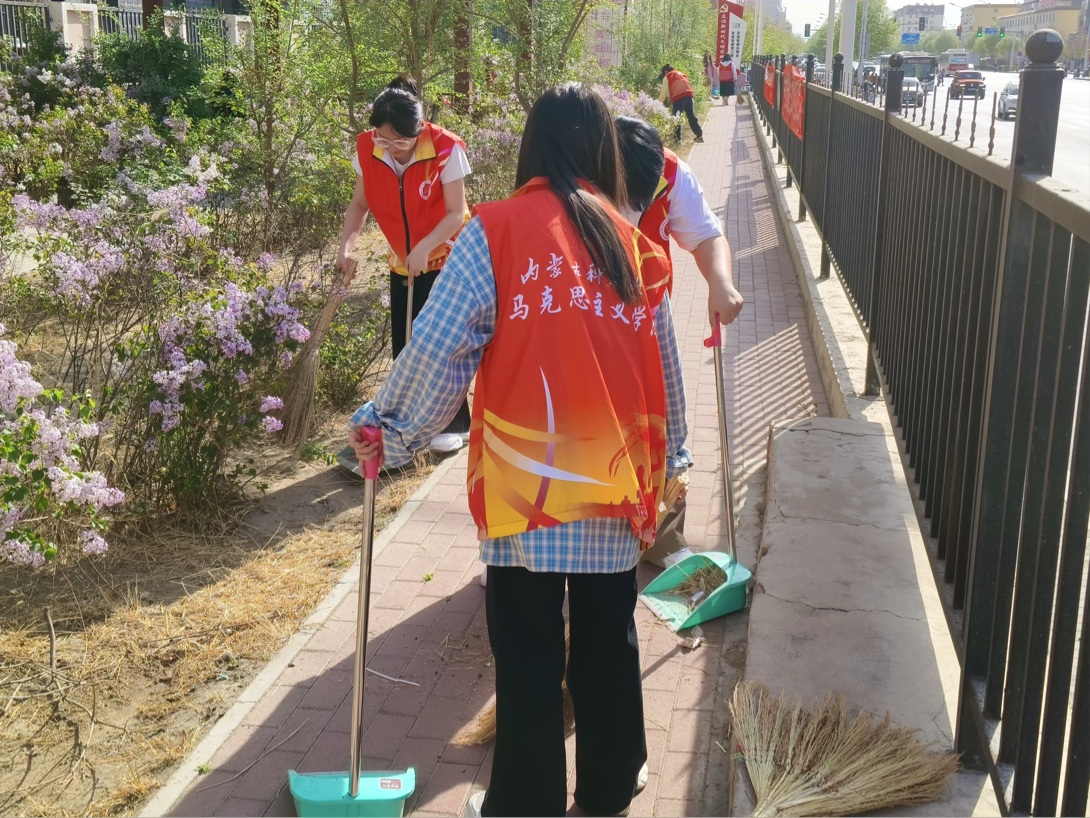 活动伊始,志愿者们在社区工作人员的引导下明确分工、高效协作,针对社区环境卫生开展全方位、无死角的清扫整治。大家手持清洁工具,深入小区绿化带,仔细捡拾、清理隐藏在草丛中的白色垃圾、散落烟头与各类杂物;同时走进居民楼道,耐心铲除、清理墙面、公告栏与扶手上的各类小广告,不放过任何一处卫生死角。志愿者们用细致认真的劳动快速改善了社区的环境卫生面貌,也以饱满的热情展现了马院学子的青春风采。