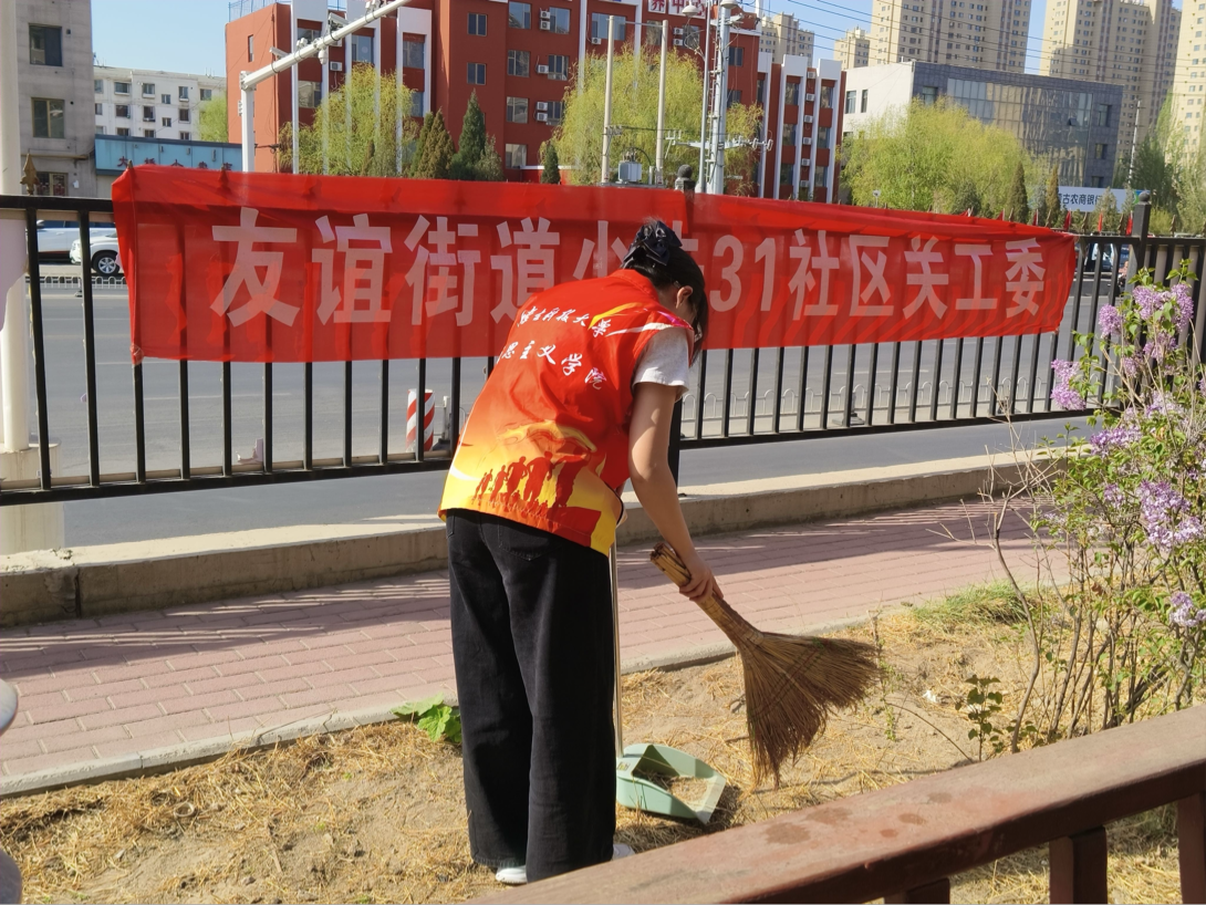 学子走进友谊街道少先31社区79小区,开展环境卫生清扫志愿服务活动,用实际行动为社区环境提质增靓。