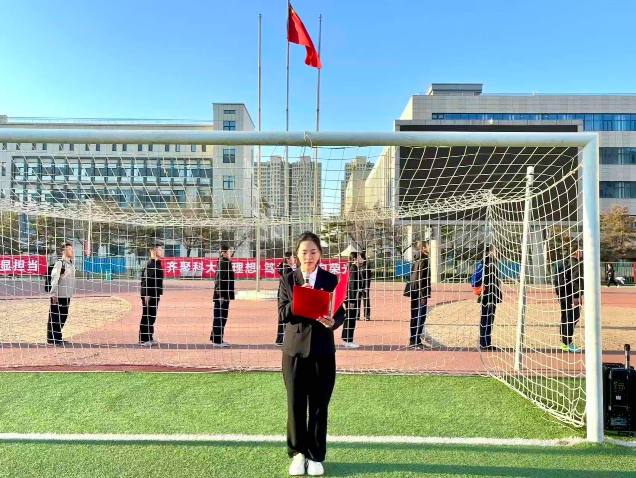 王璐同学在国旗下发言,她立足“十五五”规划开局起步与学校建校七十周年的时代背景,号召同学们以青春之我、奋斗之我,将爱国情、强国志、报国行融入日常,以实际行动传承科大精神,在民族复兴的征程中书写属于青年一代的担当。